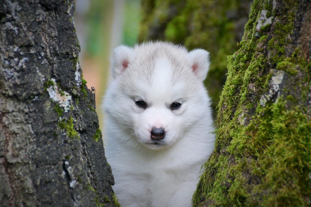 | Couleur | Grise clair et blanche, aux yeux marrons. |